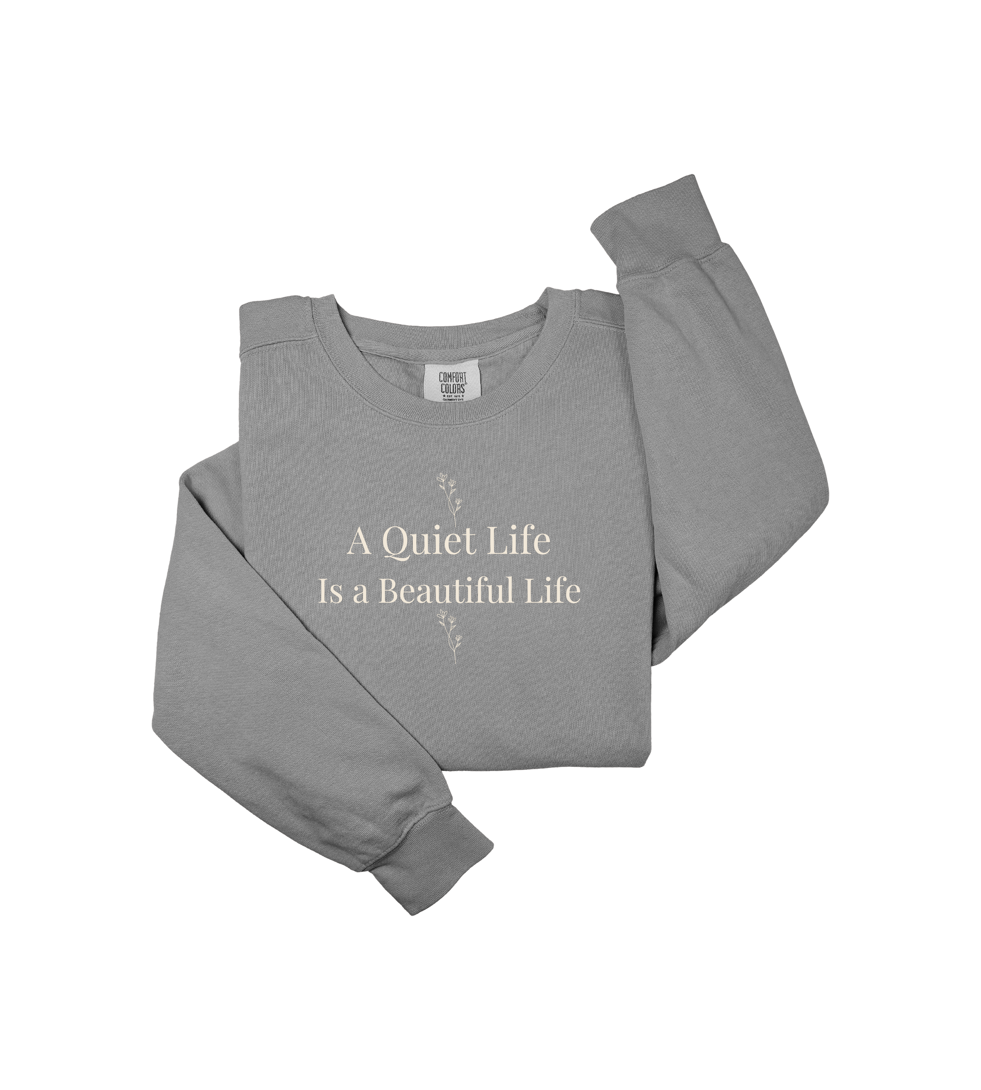A Quiet Life is a Beautiful Life Sweatshirt-Cozy Garment-Dyed Crewneck, Minimalist Botanical Quote